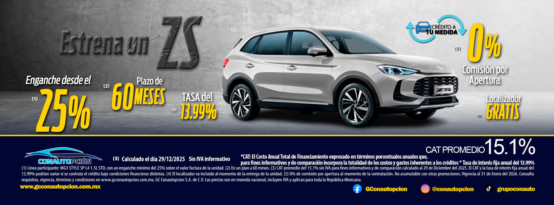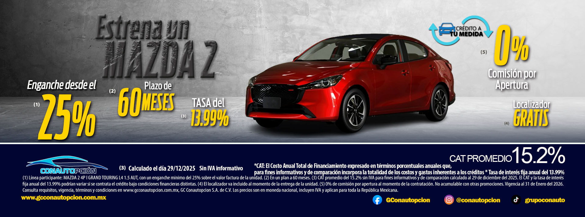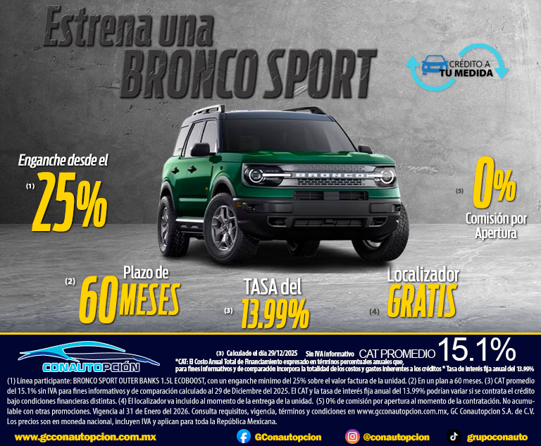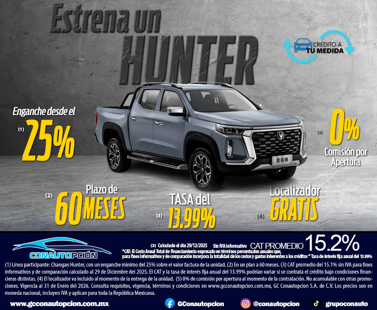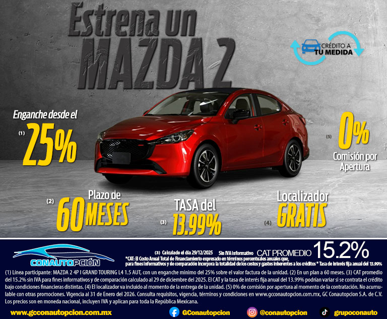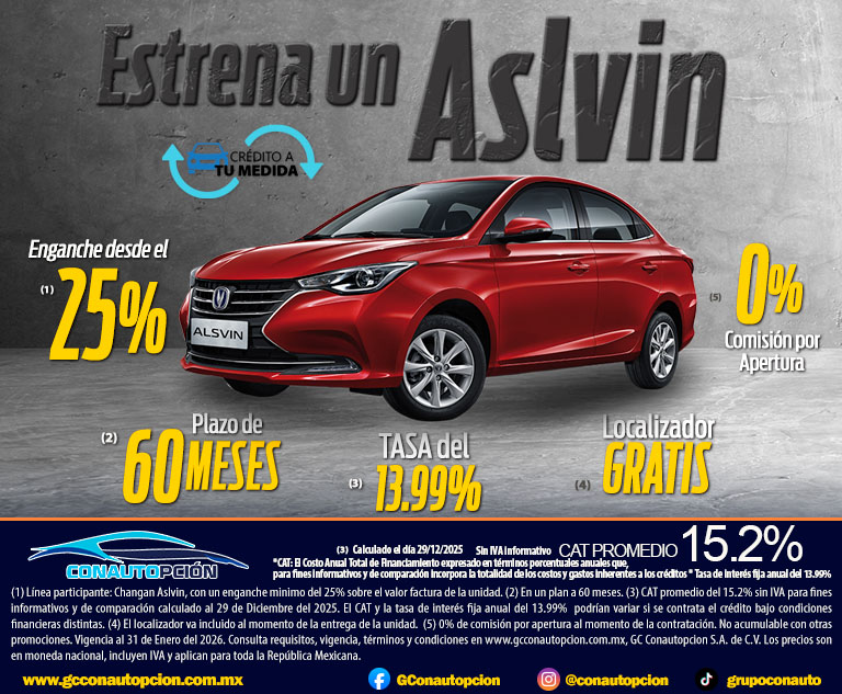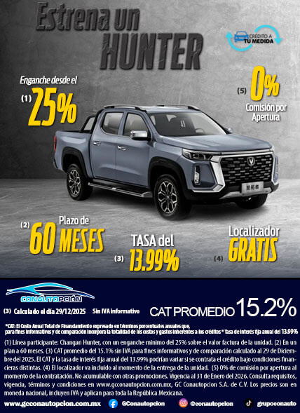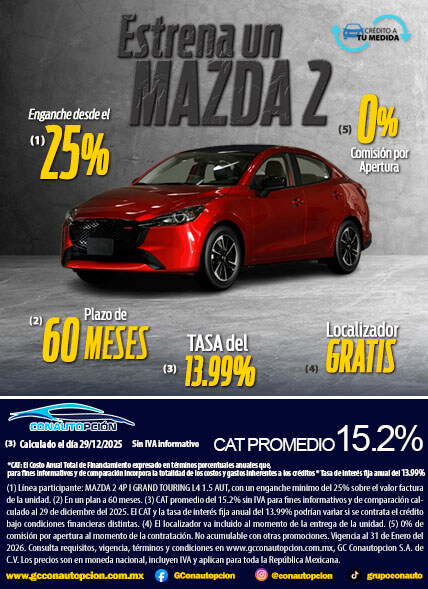 Si usted desea dejar de recibir mensajes promocionales de nuestra parte puede solicitarlo a GCCONAUTOPCIÓN S.A. DE C.V., por escrito con acuse de recibo en Avenida Mariano